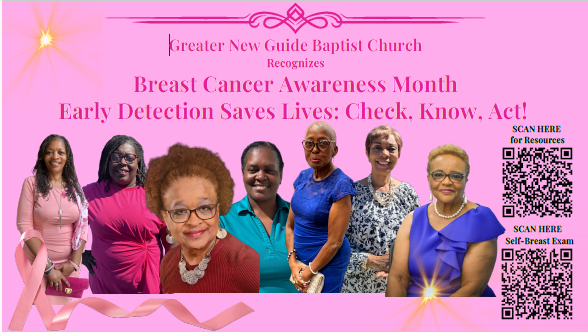 "The Greater New Guide Health Care Ministry reminds you to steward your temple—check, Know, Act! Early Detection Saves Lives"